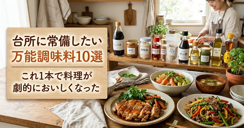 ここでいう万能調味料とは、1本持っていると複数の料理に使え、味付けの失敗を減らしてくれる調味料のことです。